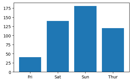 plt.bar(tip_sum['day'],tip_sum['tip'])